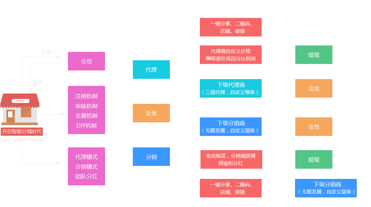 對于商家而言,代理商不僅是代理人,也可以是消費者,雙重身份,隨意切換,推廣產品的同時還能刺激消費,多渠道盈利。