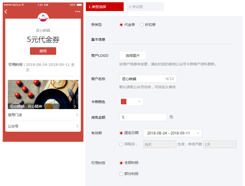 優(yōu)惠券是商家吸引粉絲和回饋粉絲的一款非常有效的營銷工具。 優(yōu)惠券設(shè)置簡便,商家只需設(shè)置活動名稱、活動時間、活動獎項等基本信息。