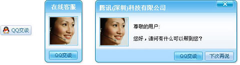 方法1: 在您企業(yè)的網(wǎng)站,設(shè)置 “企業(yè)QQ在線狀態(tài)”代碼后,客戶就能與您的員工進(jìn)行會(huì)話 企業(yè)QQ在線狀態(tài):您的客戶打開(kāi)您的企業(yè)網(wǎng)站時(shí)將看到的是您的企業(yè)QQ圖標(biāo),客戶點(diǎn)擊后,可直接您的員工進(jìn)行會(huì)話。 “企業(yè)QQ在線狀態(tài)”樣式列舉: ![]() 方法2:您可以將企業(yè)QQ號(hào)碼告訴您的客戶,并讓您的客戶將您的企業(yè)QQ號(hào)添加為好友進(jìn)行會(huì)話。 您的客戶可通過(guò)個(gè)人QQ的“查找聯(lián)系人/群/企業(yè)”功能找到您的企業(yè)QQ,并添加為好友。如添加好友成功您的客戶則可以像與其他QQ好友在線聊天一樣,向您的企業(yè)QQ發(fā)起會(huì)話、發(fā)送圖片、截圖或傳送文件。