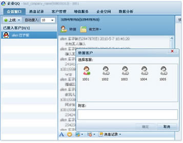 當(dāng)客戶咨詢時(shí),處于當(dāng)前會(huì)話中的員工如果無(wú)法解決或者覺(jué)得由另一位員工更能為該客戶服務(wù),則可隨時(shí)使用“客戶轉(zhuǎn)接”功能,可以很方便的由一個(gè)工號(hào)轉(zhuǎn)到的另一個(gè)工號(hào)為此客戶服務(wù)。