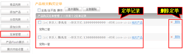 5、定單管理可以對(duì)定單進(jìn)行查詢、刪除