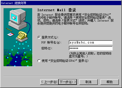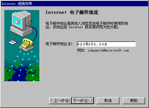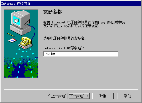此處填寫的是在Outlook express 中您的英文或者拼音名字。它并不影響您的任何工作,只是在您有多個郵箱時可以用來標識是哪個信箱。至此,您已經簡單的設置完您的一個信箱。再進行簡單的幾步設置,就可以開始使用信箱了。